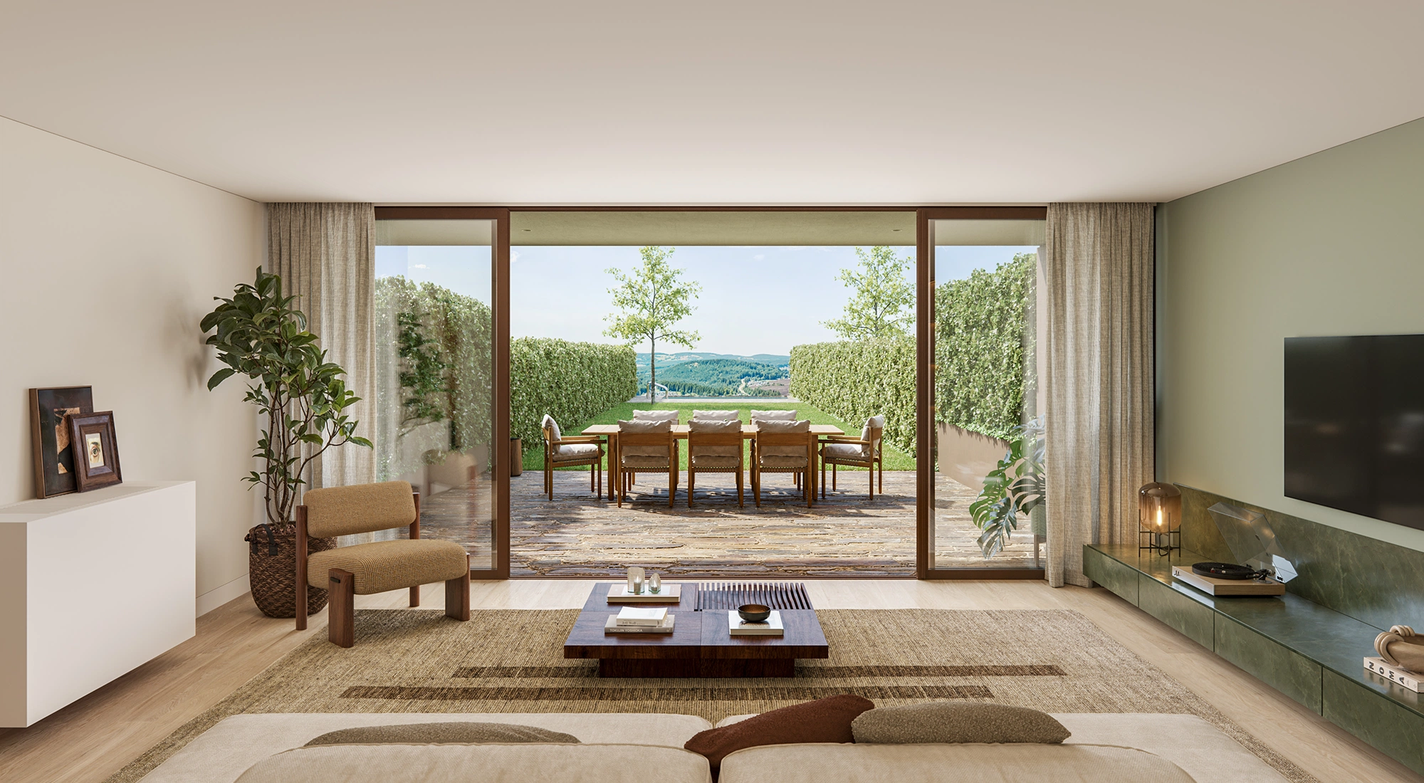 A alegria da sua família expande-se numa casa com jardim privado e uma vista livre. As áreas de estar generosas, os espaços de arrumação e os acabamentos em tons naturais, inspiram conforto e pertença.